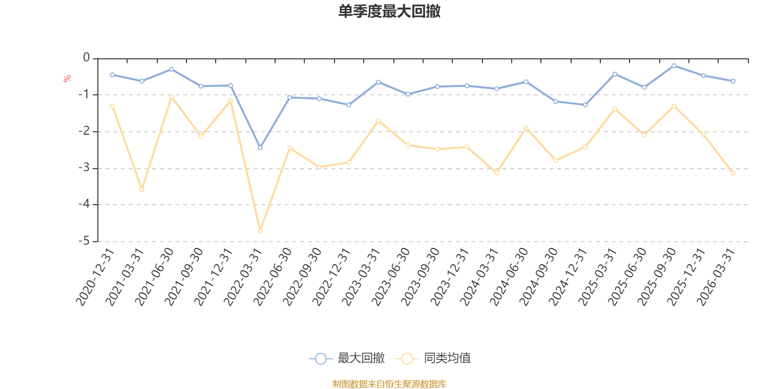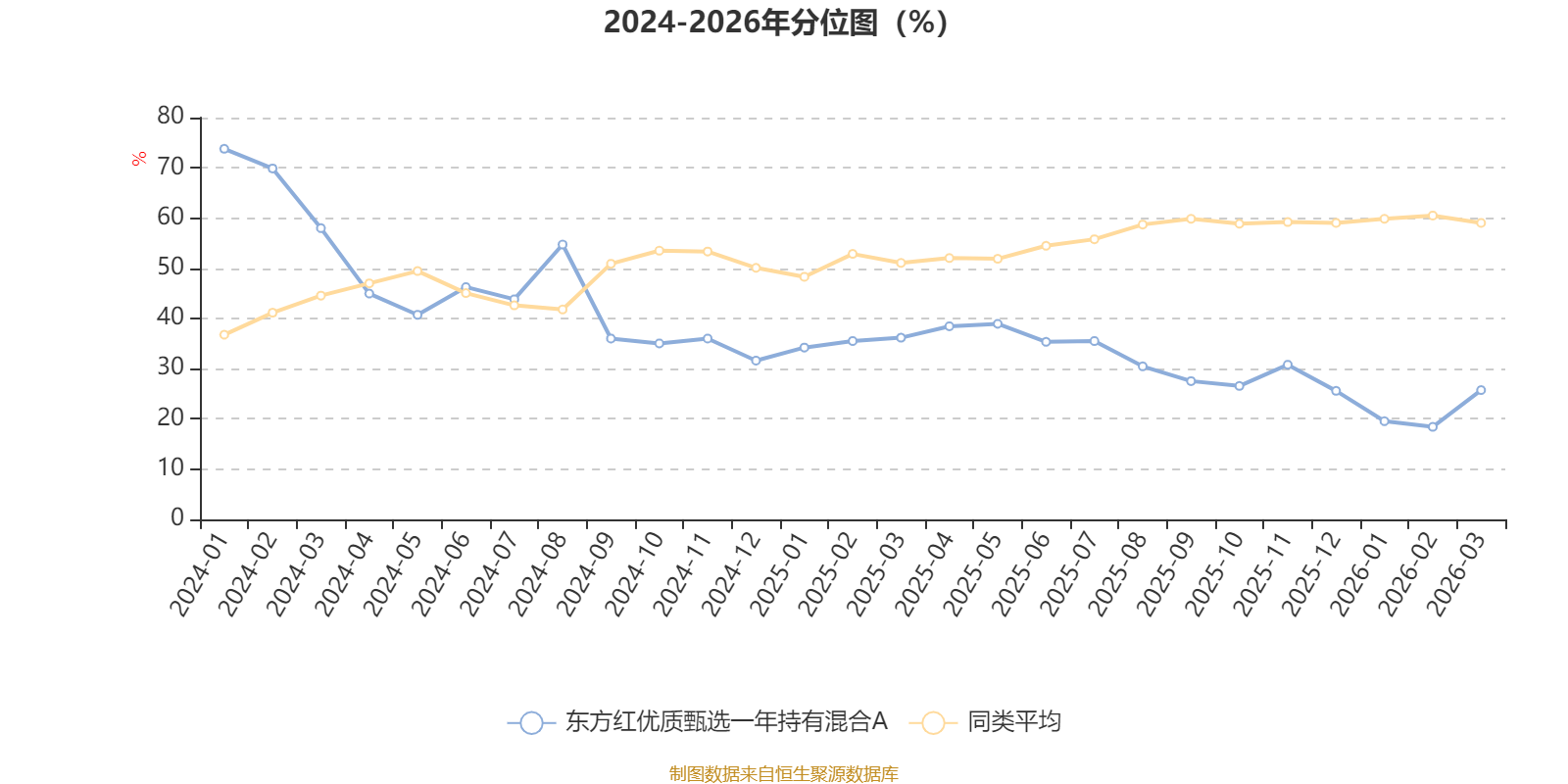 通过所选区间该基金净值增长率分位图,可以观察该基金与同类基金业绩比较情况。图为坐标原点到区间内某时点的净值增长率在同类基金中的分位数。