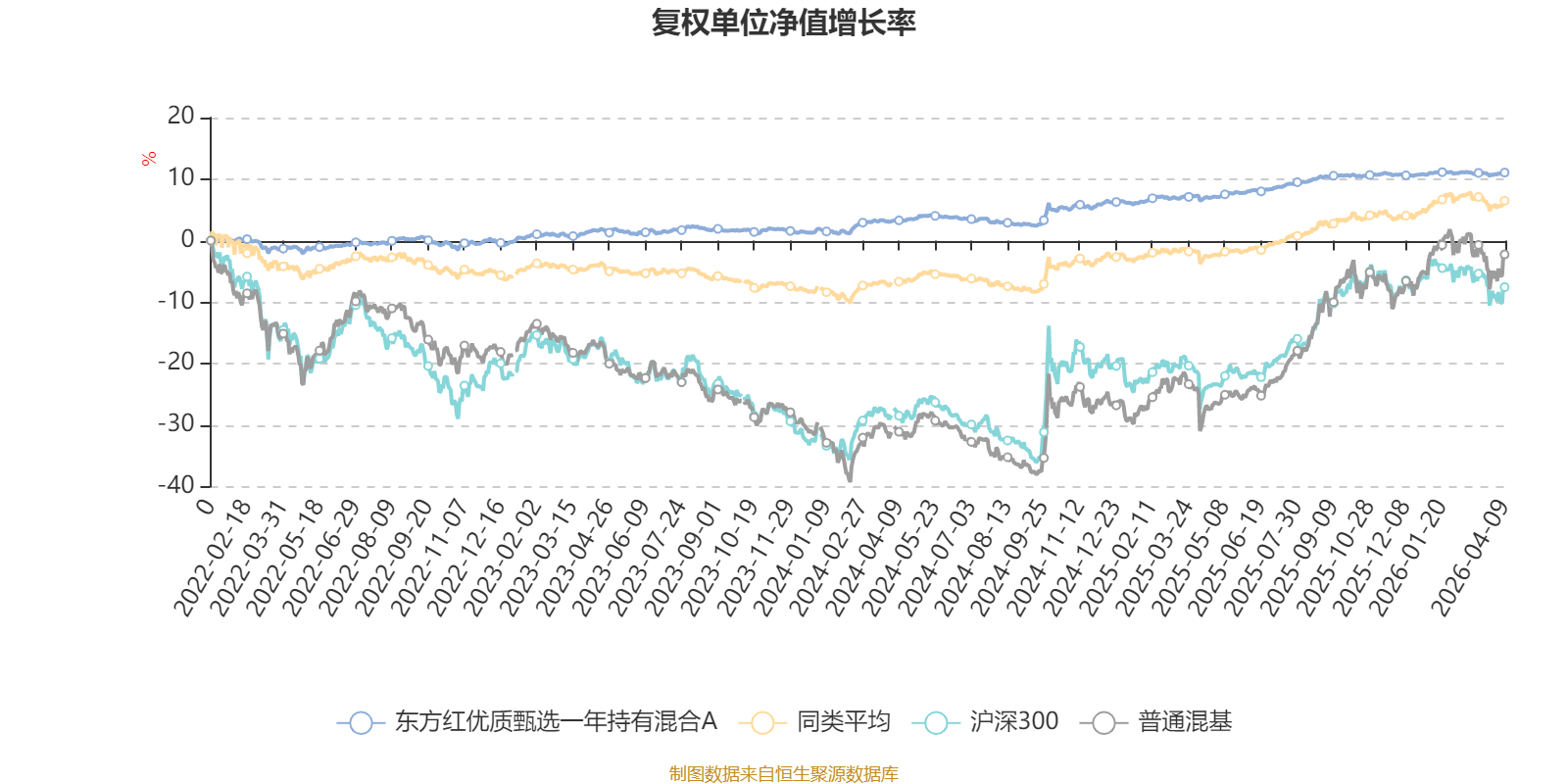 截至4月9日,东方红优质甄选一年持有混合A近三个月复权单位净值增长率为0.07%,位于同类可比基金332/629;近半年复权单位净值增长率为0.29%,位于同类可比基金421/629;近一年复权单位净值增长率为4.12%,位于同类可比基金497/629;近三年复权单位净值增长率为9.18%,位于同类可比基金348/581。