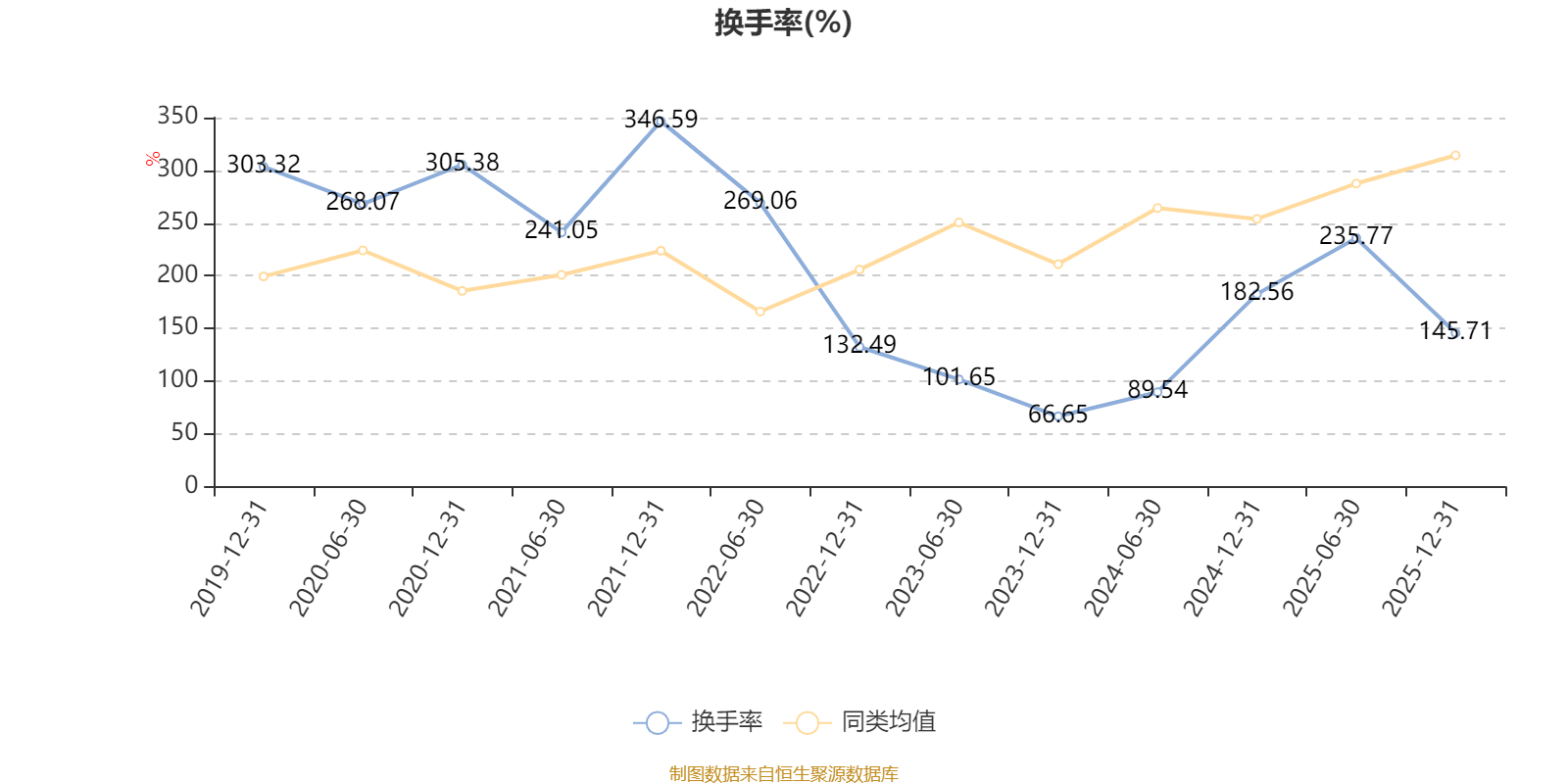 截至2025年12月31日,基金最近一年换手率约394.86%,持续3年低于同类均值。