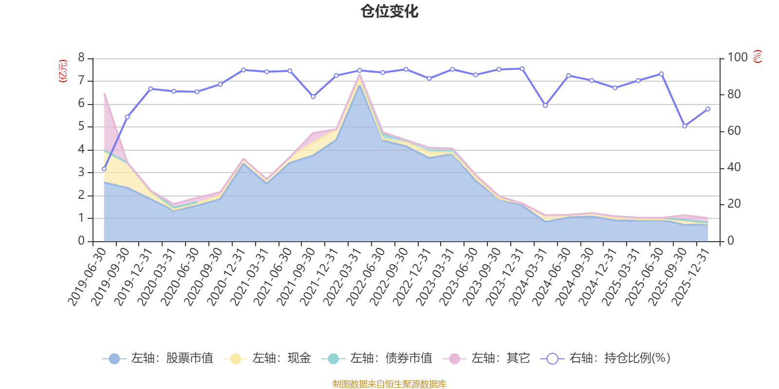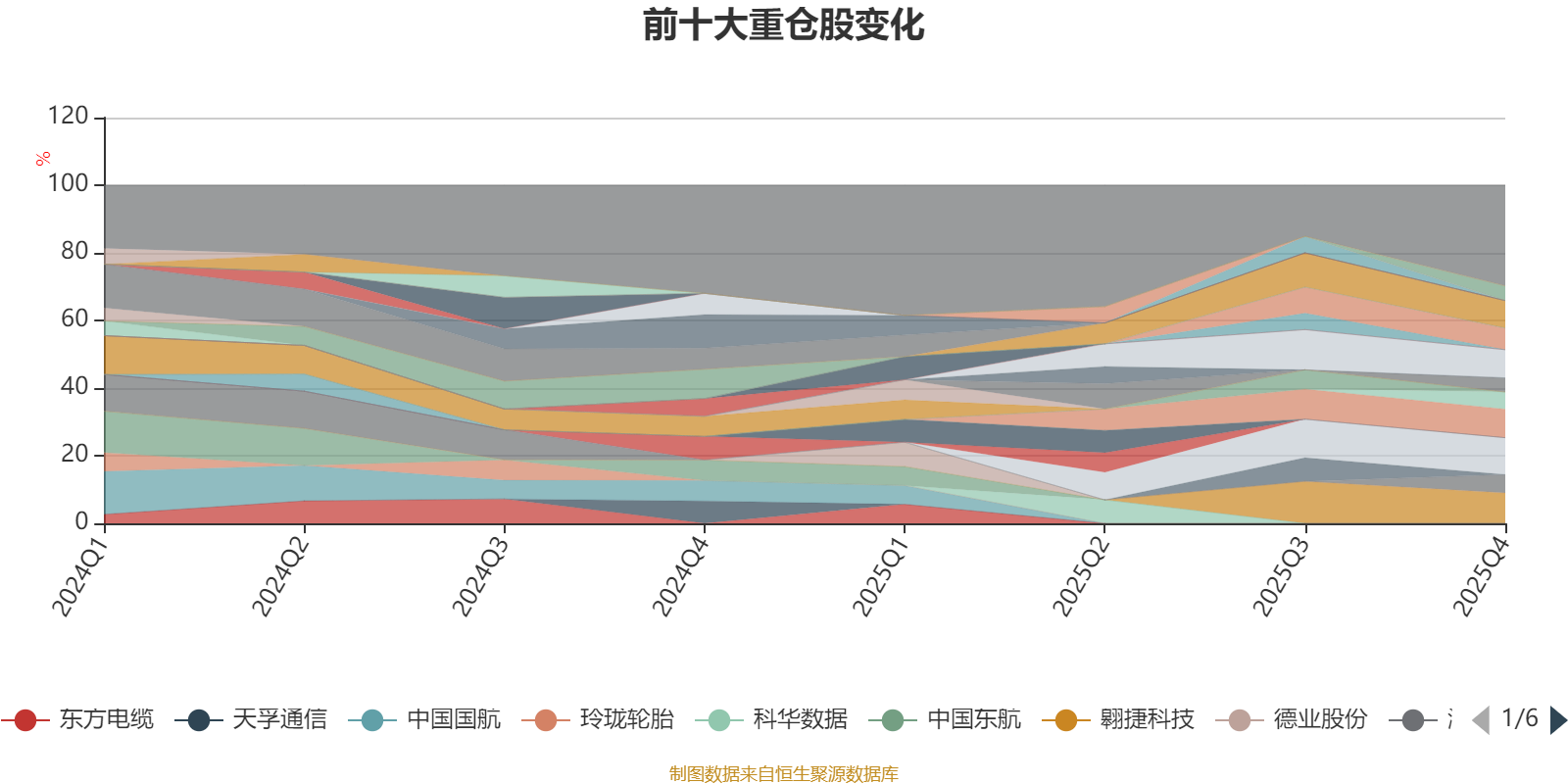 该基金持股集中度较高,近2年前十大重仓股集中度长期超过60%。截至2025年末,基金十大重仓股分别是润泽科技、翱捷科技、大位科技、科泰电源、光环新网、金桥信息、澜起科技、协创数据、海光信息、潍柴重机。
