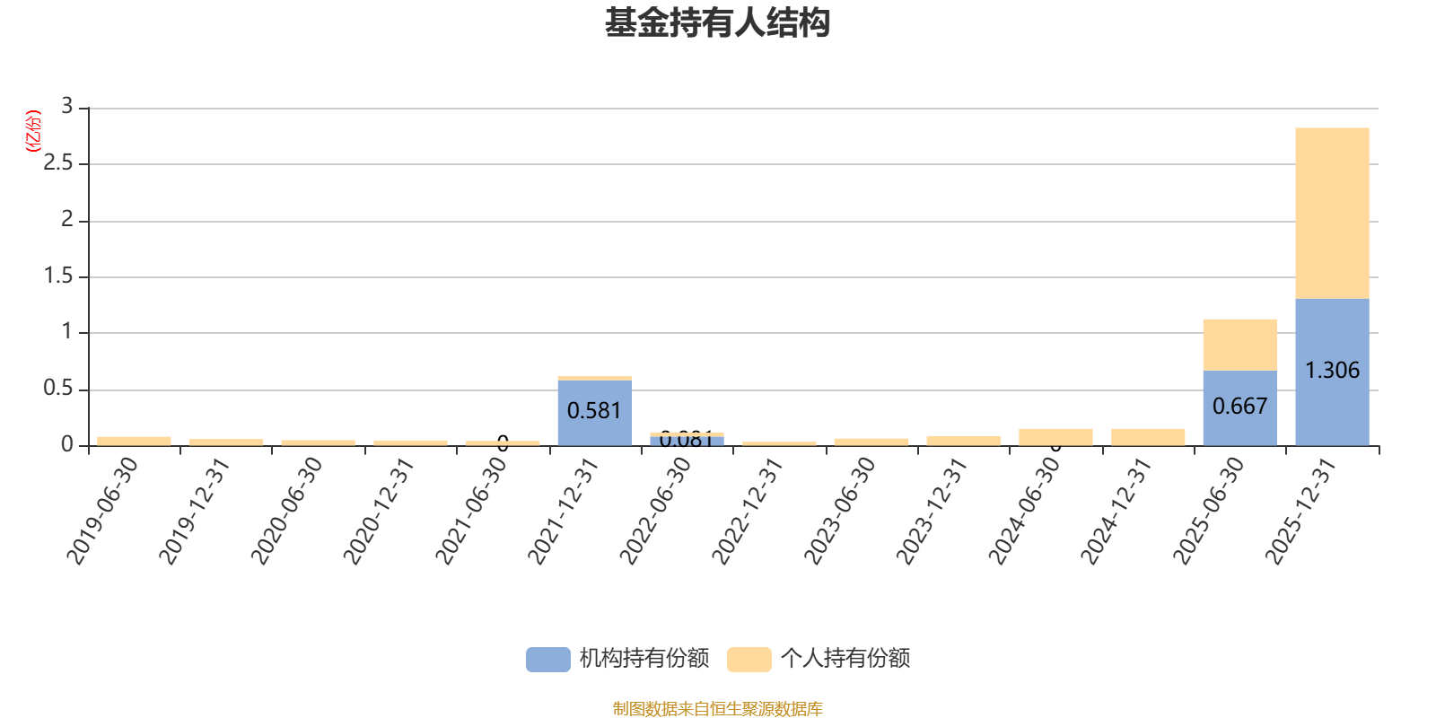 截至2025年12月31日,基金持有人共计5919户,合计持有2.82亿份。其中管理人员工持有274.77万份,占比0.97%,机构持有份额占比46.31%,个人投资者占比53.69%。