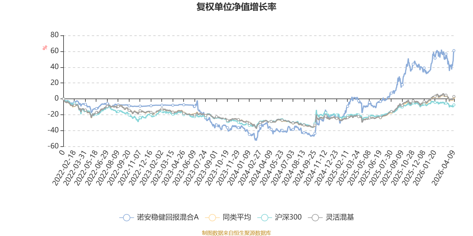 截至4月9日,诺安稳健回报混合A近三个月复权单位净值增长率为7.48%,位于同类可比基金137/1287;近半年复权单位净值增长率为6.46%,位于同类可比基金354/1286;近一年复权单位净值增长率为86.10%,位于同类可比基金116/1286;近三年复权单位净值增长率为73.36%,位于同类可比基金63/1286。