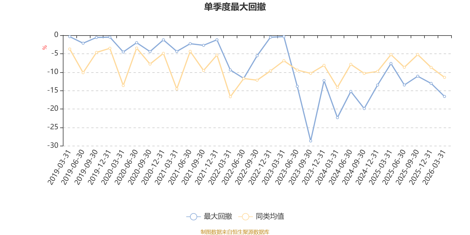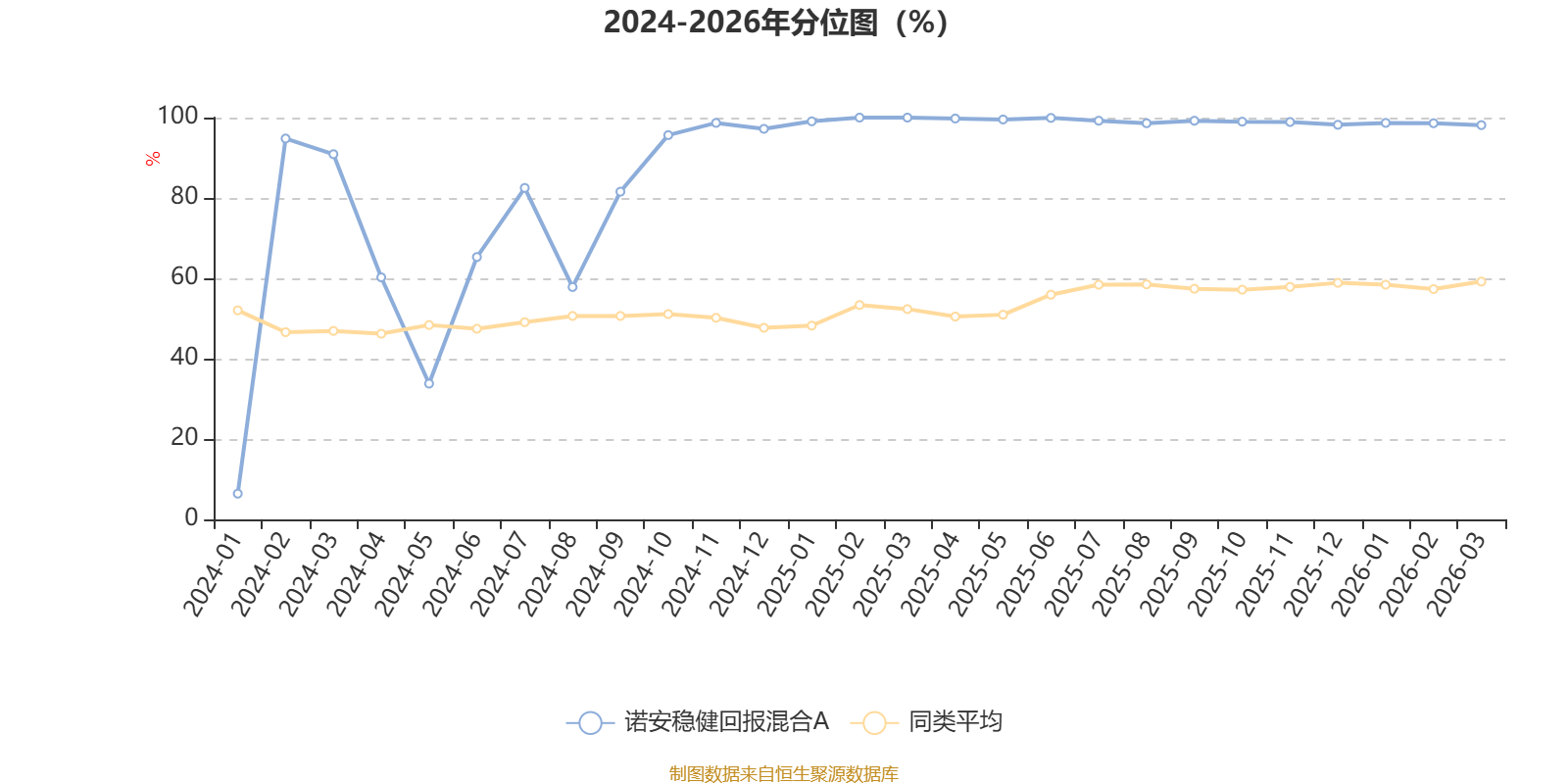 通过所选区间该基金净值增长率分位图,可以观察该基金与同类基金业绩比较情况。图为坐标原点到区间内某时点的净值增长率在同类基金中的分位数。