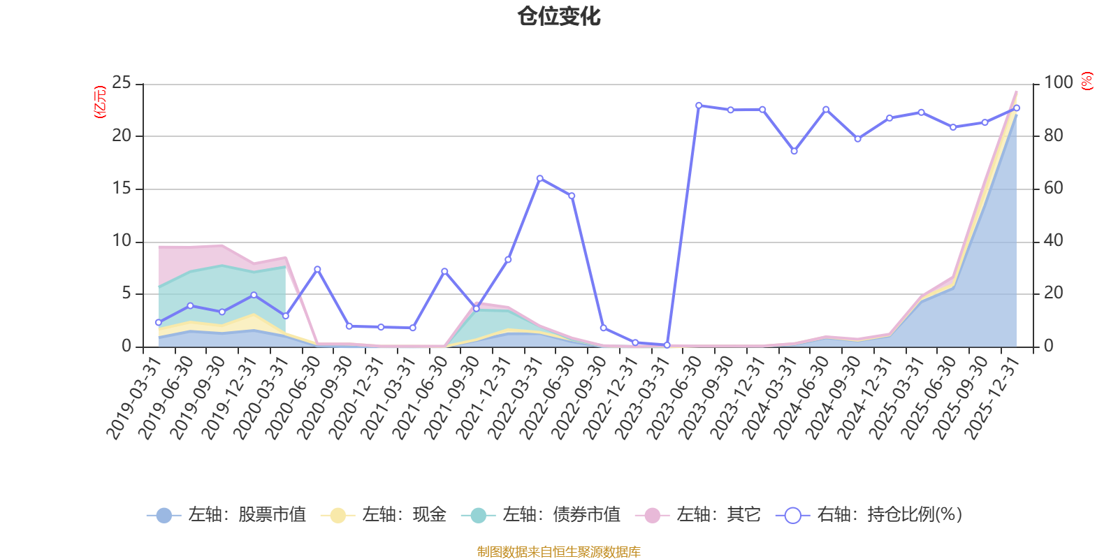 据定期报告数据统计,近三年平均股票仓位为79.38%,同类平均为72.57%。2023年上半年末基金达到91.8%的最高仓位,2023年一季度末最低,为0.71%。