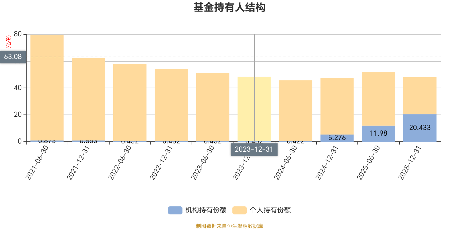 截至2025年12月31日,基金持有人共计17.78万户,合计持有48.12亿份。其中管理人员工持有161.47万份,占比0.03%,机构持有份额占比42.46%,个人投资者占比57.54%。