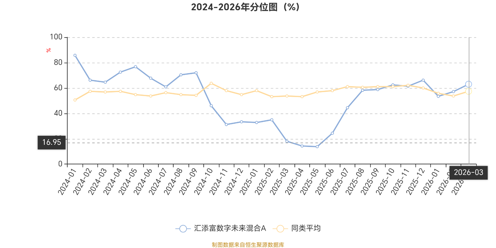 通过所选区间该基金净值增长率分位图,可以观察该基金与同类基金业绩比较情况。图为坐标原点到区间内某时点的净值增长率在同类基金中的分位数。