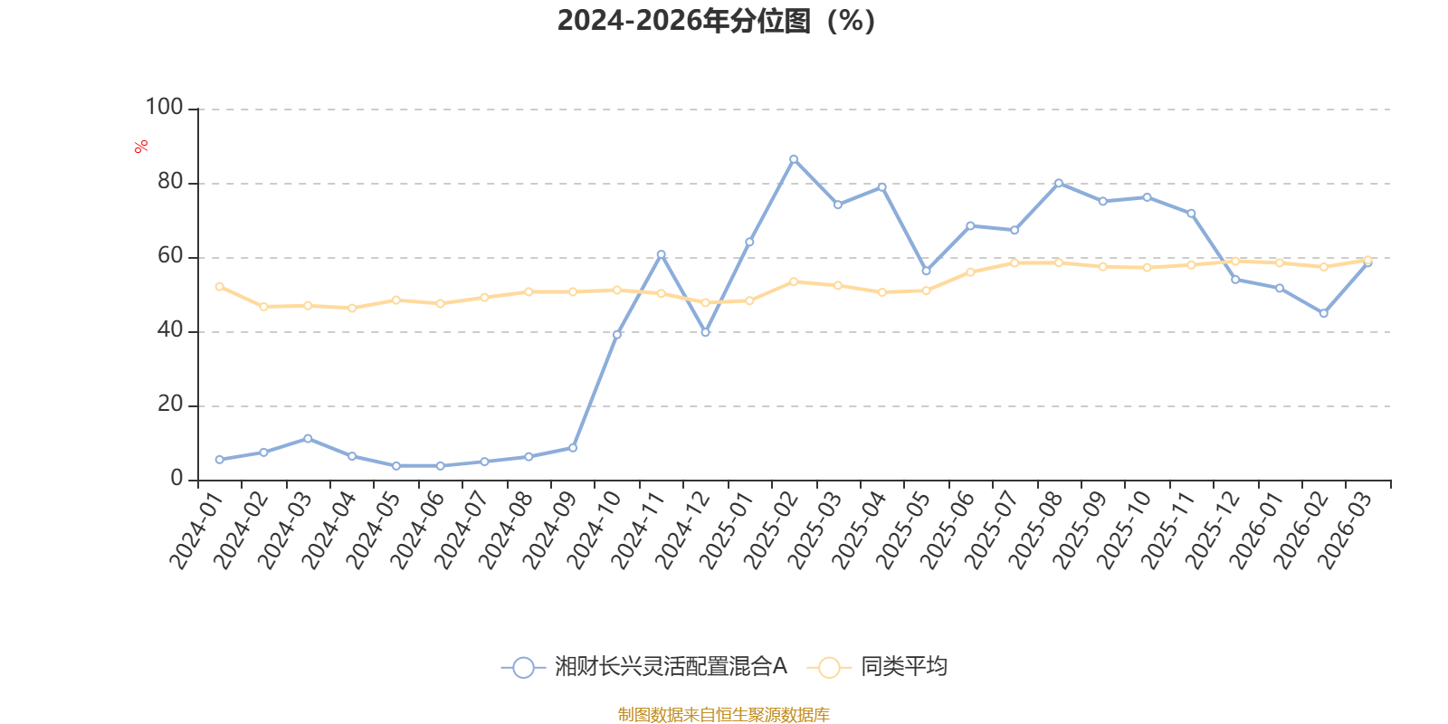 通过所选区间该基金净值增长率分位图,可以观察该基金与同类基金业绩比较情况。图为坐标原点到区间内某时点的净值增长率在同类基金中的分位数。
