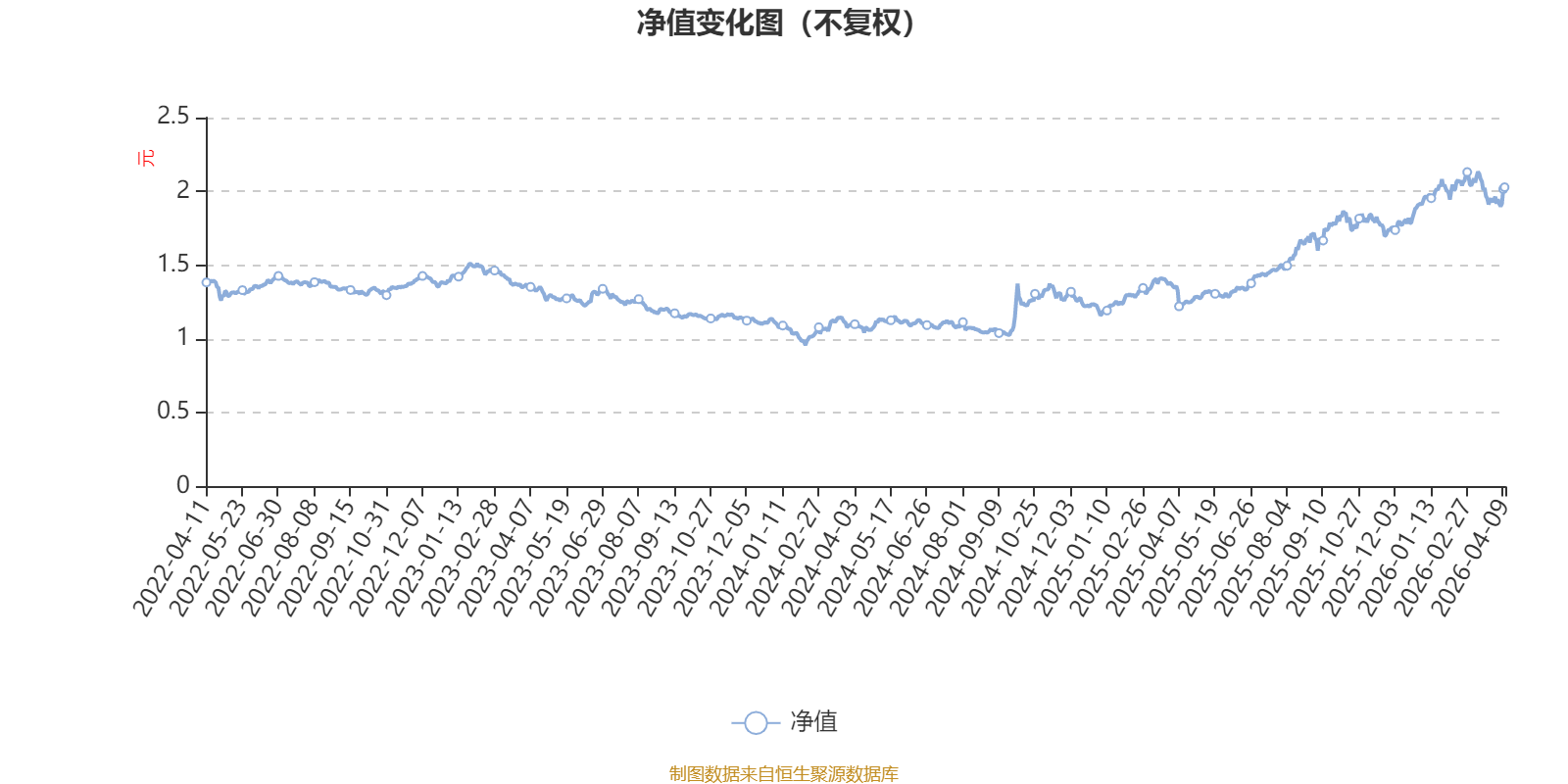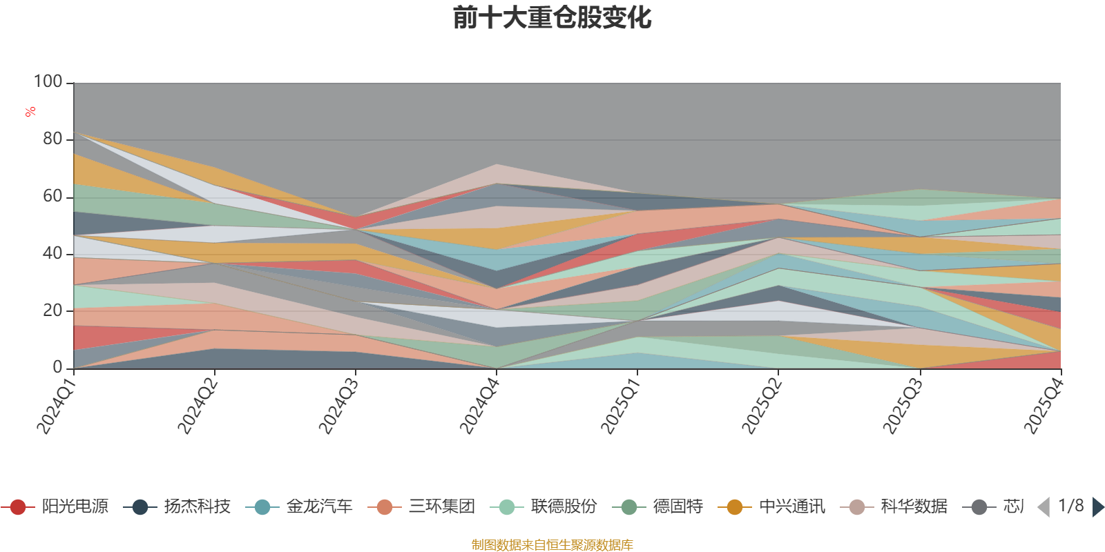 该基金持股集中度较高。截至2025年末,基金十大重仓股分别是菲利华、紫金矿业、天赐材料、阳光电源、新铝时代、奕瑞科技、中伟新材、中际联合、纽威股份、图南股份。