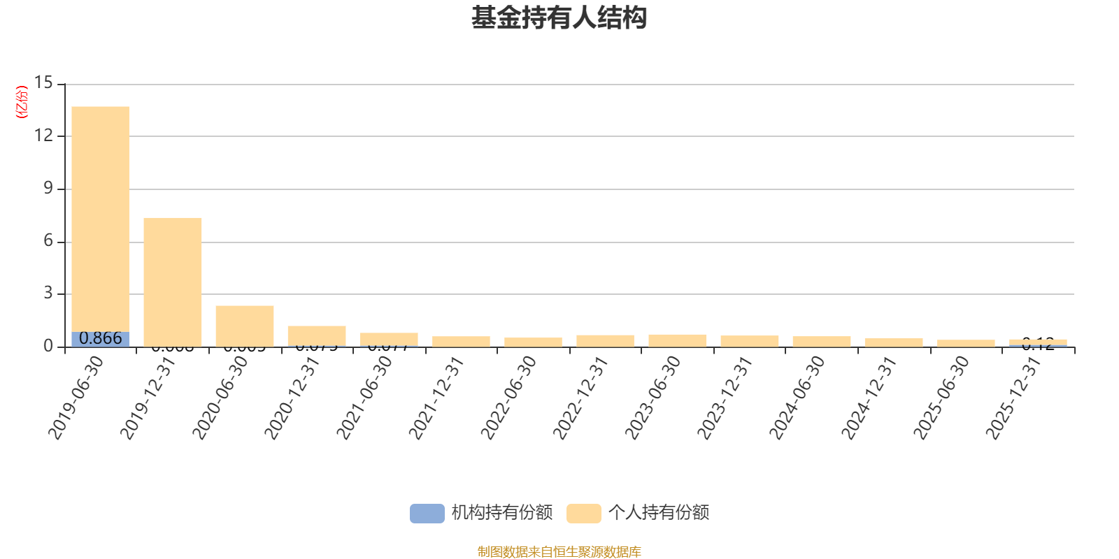 截至2025年12月31日,基金持有人共计1367户,合计持有4240.16万份。其中管理人员工持有20.55万份,占比0.48%,机构持有份额占比28.35%,个人投资者占比71.65%。