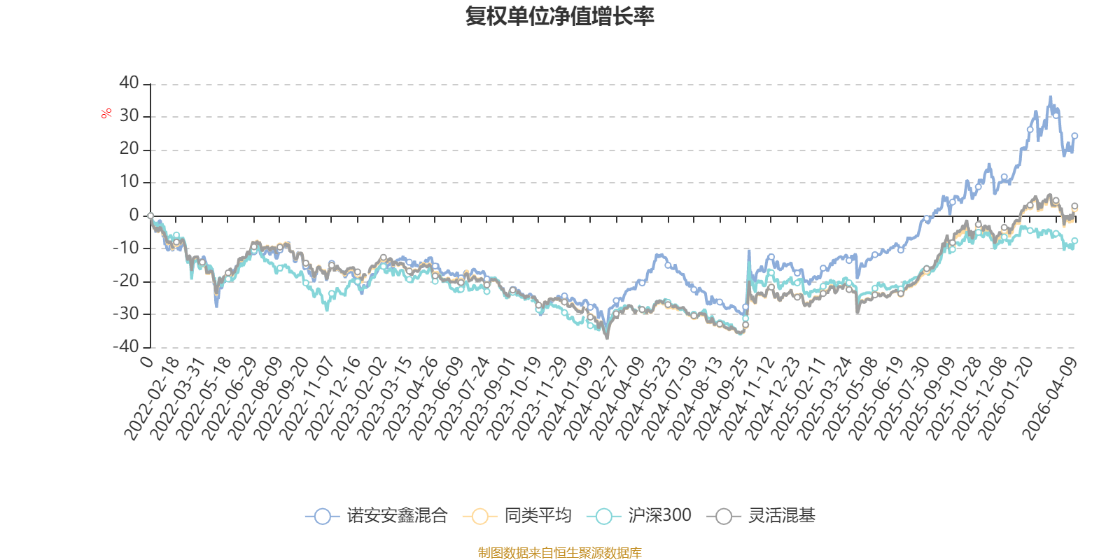 截至4月9日,诺安安鑫混合近三个月复权单位净值增长率为2.76%,位于同类可比基金291/1287;近半年复权单位净值增长率为12.13%,位于同类可比基金189/1286;近一年复权单位净值增长率为51.24%,位于同类可比基金353/1286;近三年复权单位净值增长率为45.45%,位于同类可比基金179/1286。
