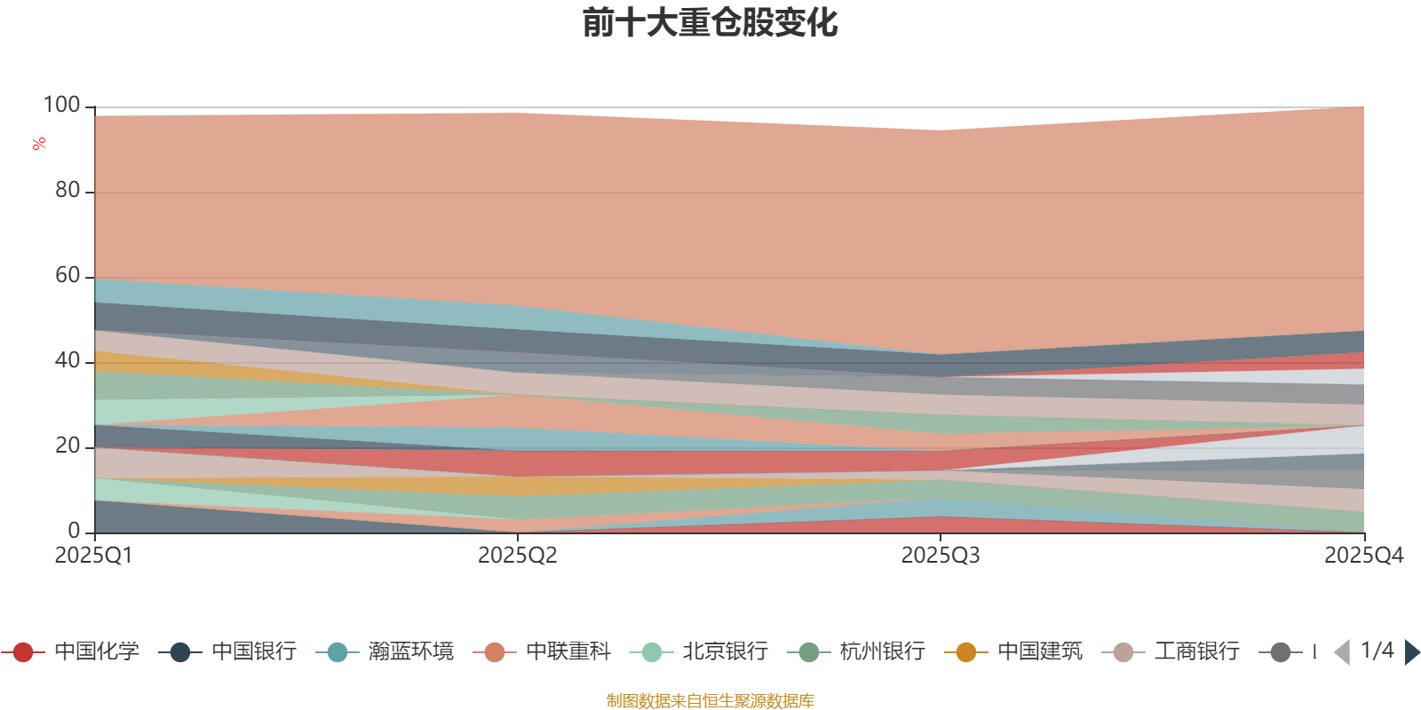 截至2025年末,基金十大重仓股分别是九丰能源、工商银行、建设银行、中国移动、杭州银行、新奥能源、山东高速、紫金矿业、分众传媒、中谷物流。