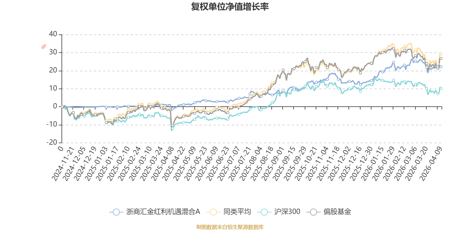 截至4月9日,浙商汇金红利机遇混合A近三个月复权单位净值增长率为4.01%,位于同类可比基金145/689;近半年复权单位净值增长率为7.80%,位于同类可比基金180/689;近一年复权单位净值增长率为23.70%,位于同类可比基金478/685。