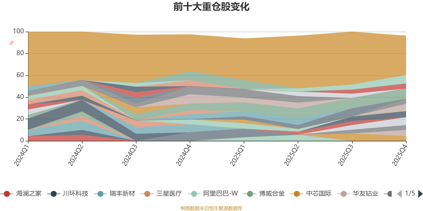 截至2025年末,基金十大重仓股分别是腾讯控股、紫金矿业、中国太保、中国平安、华友钴业、宁德时代、立讯精密、中矿资源、中芯国际、中国宏桥。