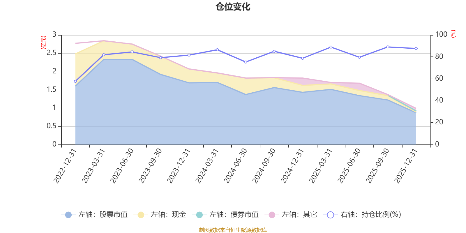 据定期报告数据统计,近三年平均股票仓位为83.2%,同类平均为85.83%。2025年三季度末基金达到89.05%的最高仓位,2022年末最低,为57.72%。