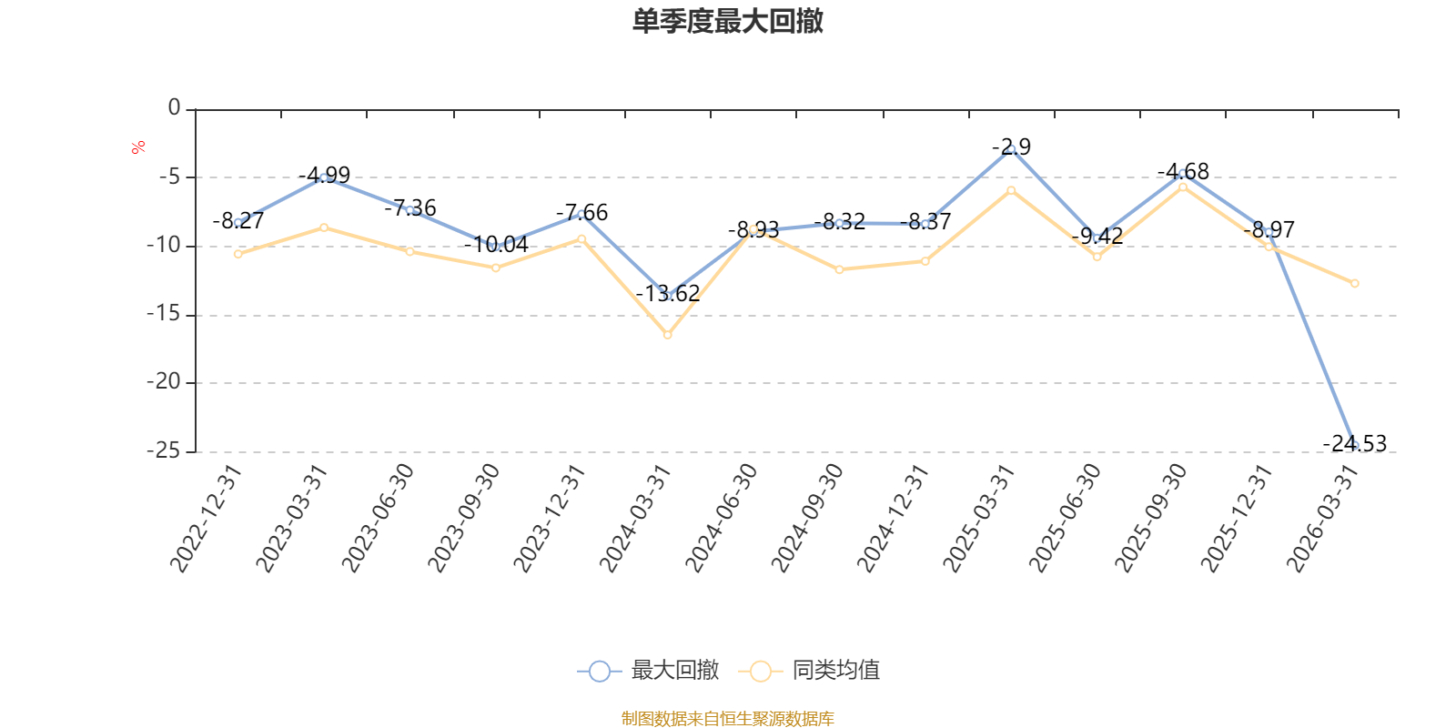 截至4月9日,基金近三年最大回撤为29.07%,同类可比基金排名177/549。单季度最大回撤出现在2026年一季度,为24.53%。
