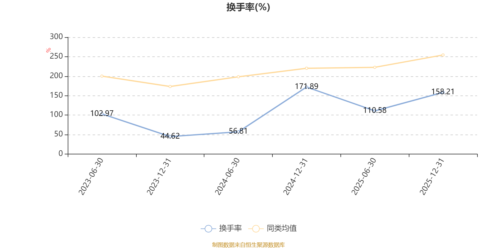 截至2025年12月31日,基金最近一年换手率约265.63%,持续低于同类均值。