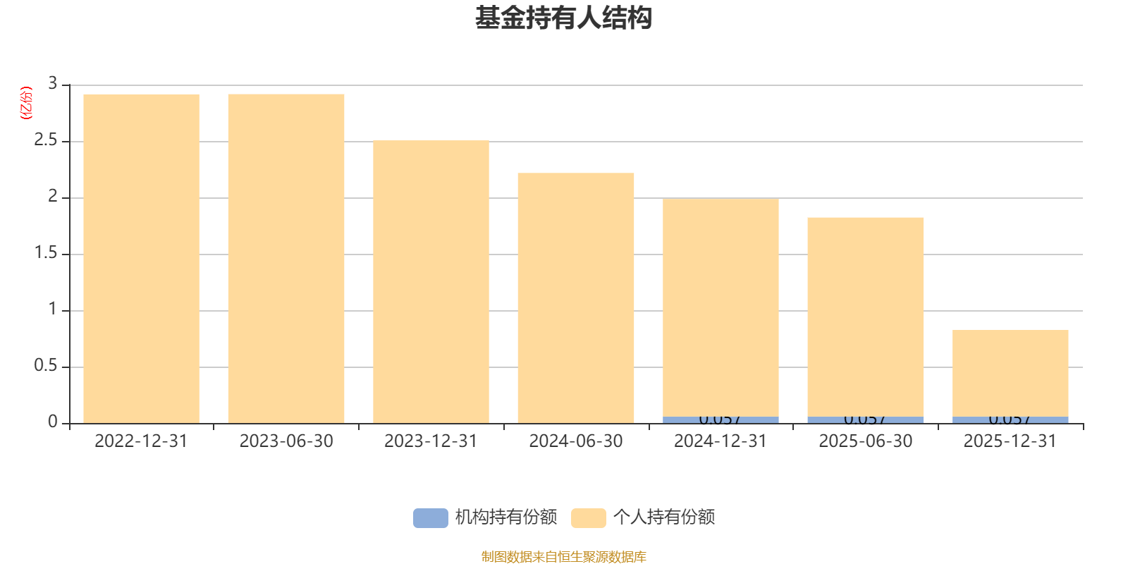 截至2025年12月31日,基金持有人共计796户,合计持有8245.62万份。其中管理人员工持有25.23万份,占比0.31%,机构持有份额占比6.92%,个人投资者占比93.08%。