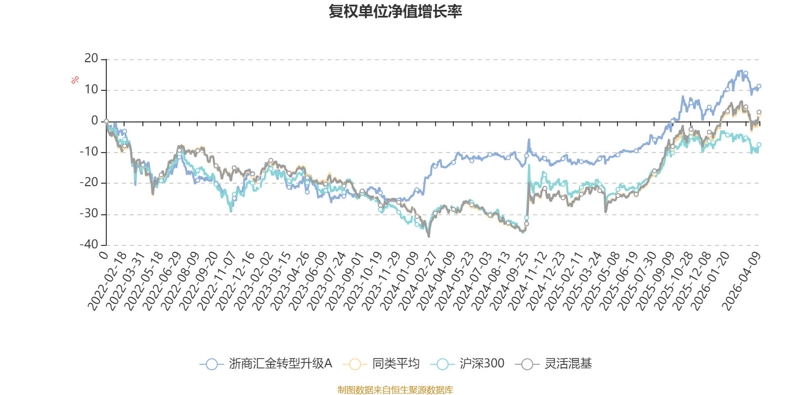 截至4月9日,浙商汇金转型升级A近三个月复权单位净值增长率为2.83%,位于同类可比基金286/1287;近半年复权单位净值增长率为2.80%,位于同类可比基金547/1286;近一年复权单位净值增长率为27.45%,位于同类可比基金710/1286;近三年复权单位净值增长率为38.78%,位于同类可比基金231/1286。