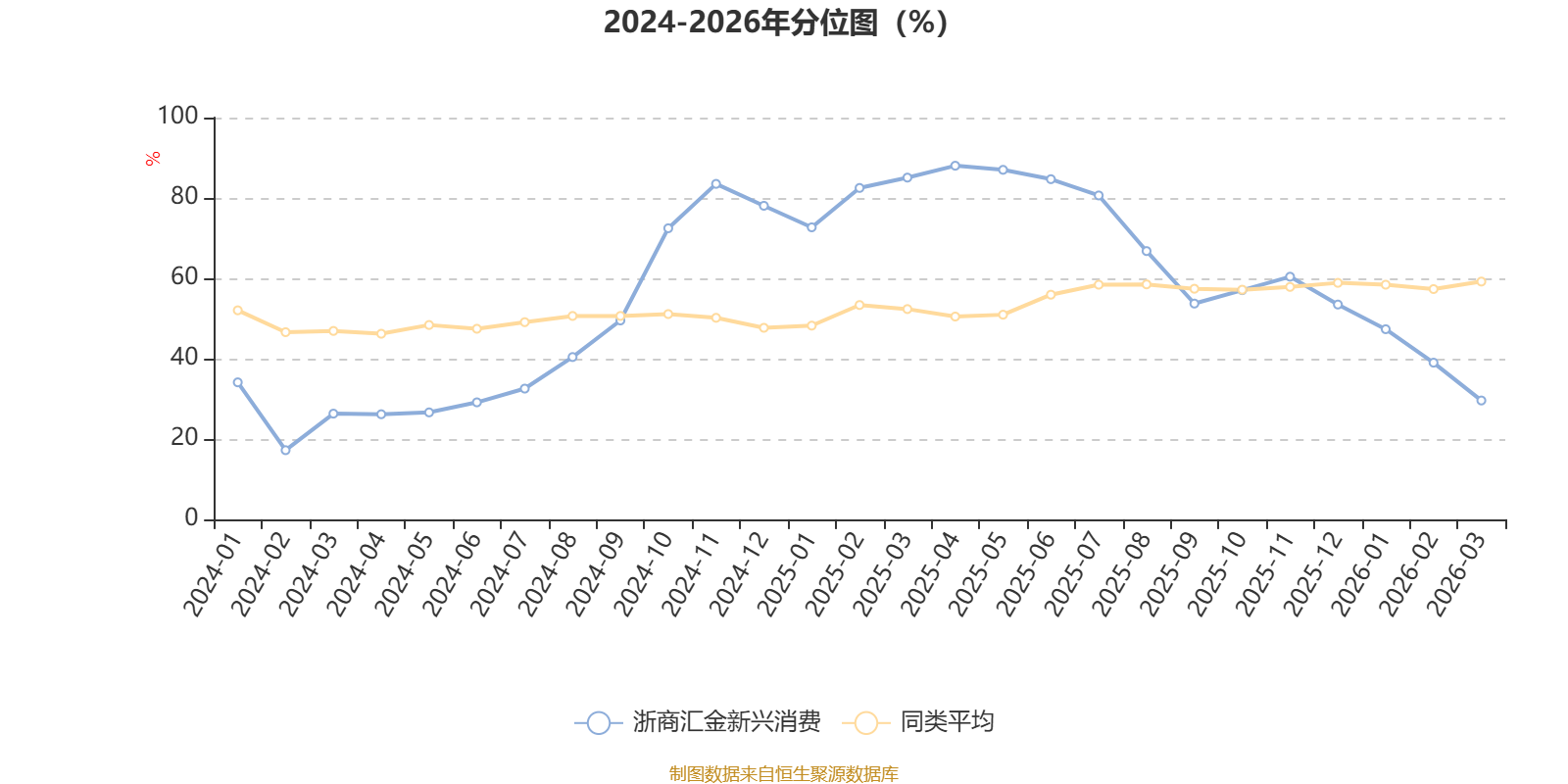 通过所选区间该基金净值增长率分位图,可以观察该基金与同类基金业绩比较情况。图为坐标原点到区间内某时点的净值增长率在同类基金中的分位数。