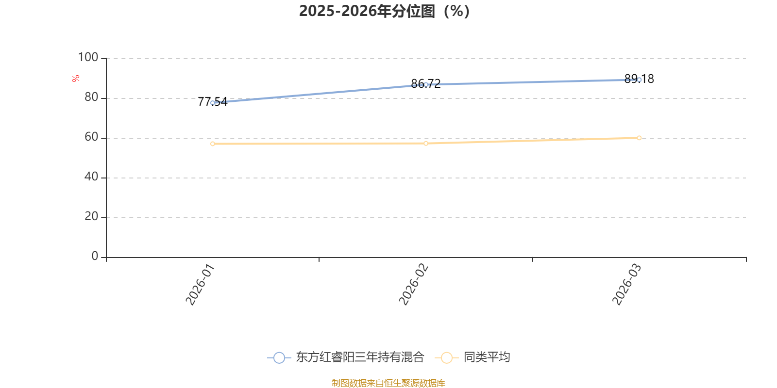 通过所选区间该基金净值增长率分位图,可以观察该基金与同类基金业绩比较情况。图为坐标原点到区间内某时点的净值增长率在同类基金中的分位数。