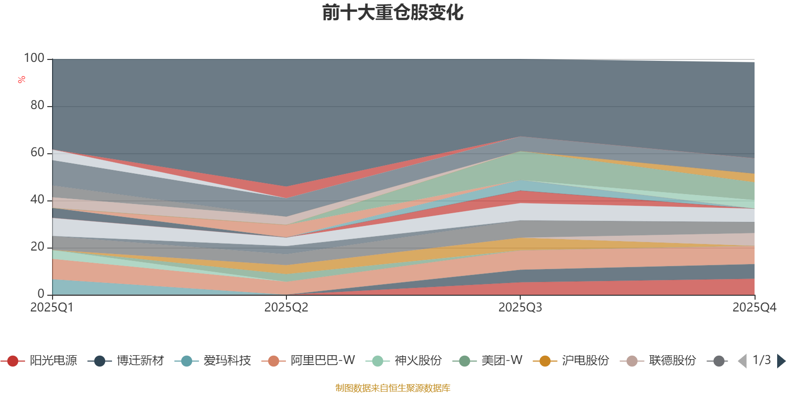 截至2025年末,基金十大重仓股分别是阿里巴巴-W、海博思创、阳光电源、腾讯控股、博迁新材、宁德时代、联德股份、中芯国际、应流股份、中国平安。