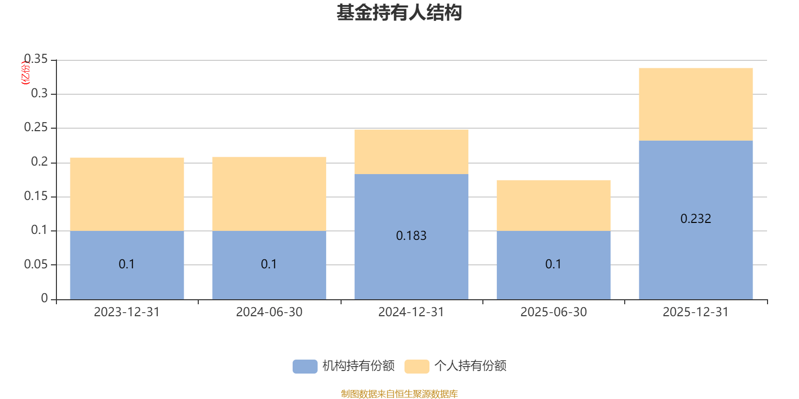 截至2025年12月31日,基金持有人共计267户,合计持有3384.75万份。其中管理人员工持有453.59万份,占比13.40%,机构持有份额占比68.61%,个人投资者占比31.39%。