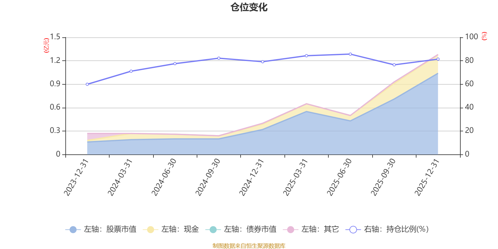 据定期报告数据统计,成立以来平均股票仓位为77.57%,同类平均为84.04%。2025年上半年末基金达到85.7%的最高仓位,2023年末最低,为59.97%。