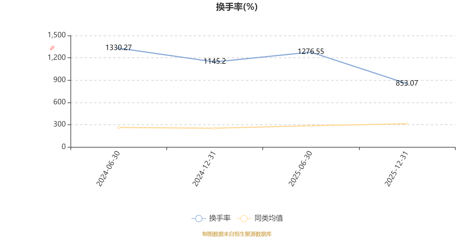 截至2025年12月31日,基金最近一年换手率约1924.56%,持续高于同类均值。