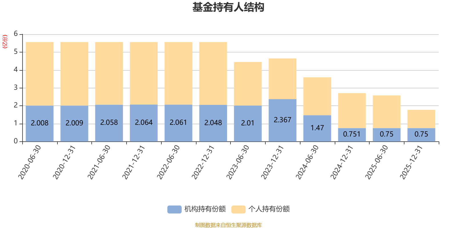 截至2025年12月31日,基金持有人共计3619户,合计持有1.77亿份。其中管理人员工持有3034.26份,机构持有份额占比42.40%,个人投资者占比57.60%。