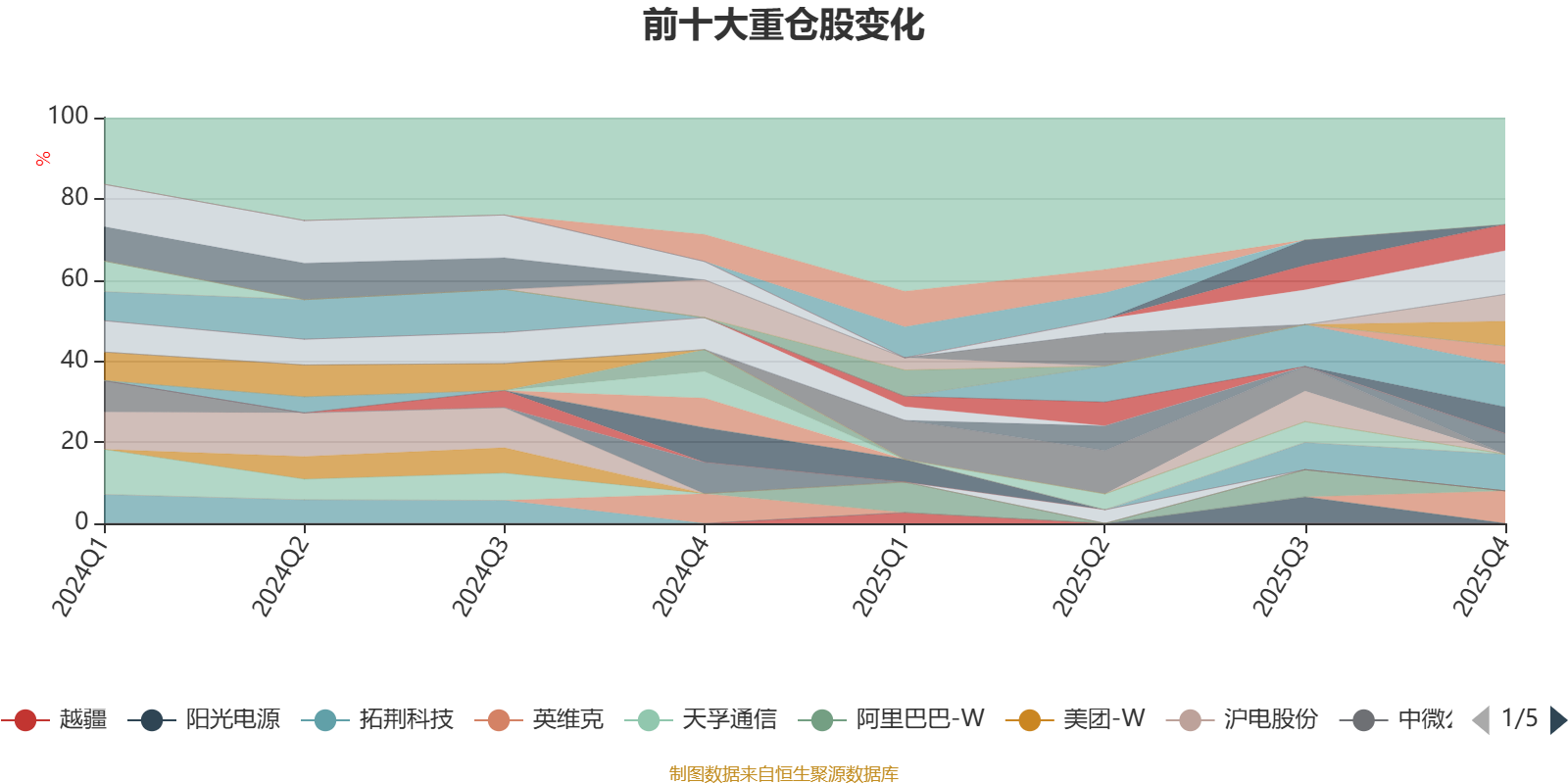 该基金持股集中度较高。截至2025年末,基金十大重仓股分别是中际旭创、新易盛、源杰科技、英维克、麦格米特、欧陆通、生益科技、长芯博创、仕佳光子、腾景科技。