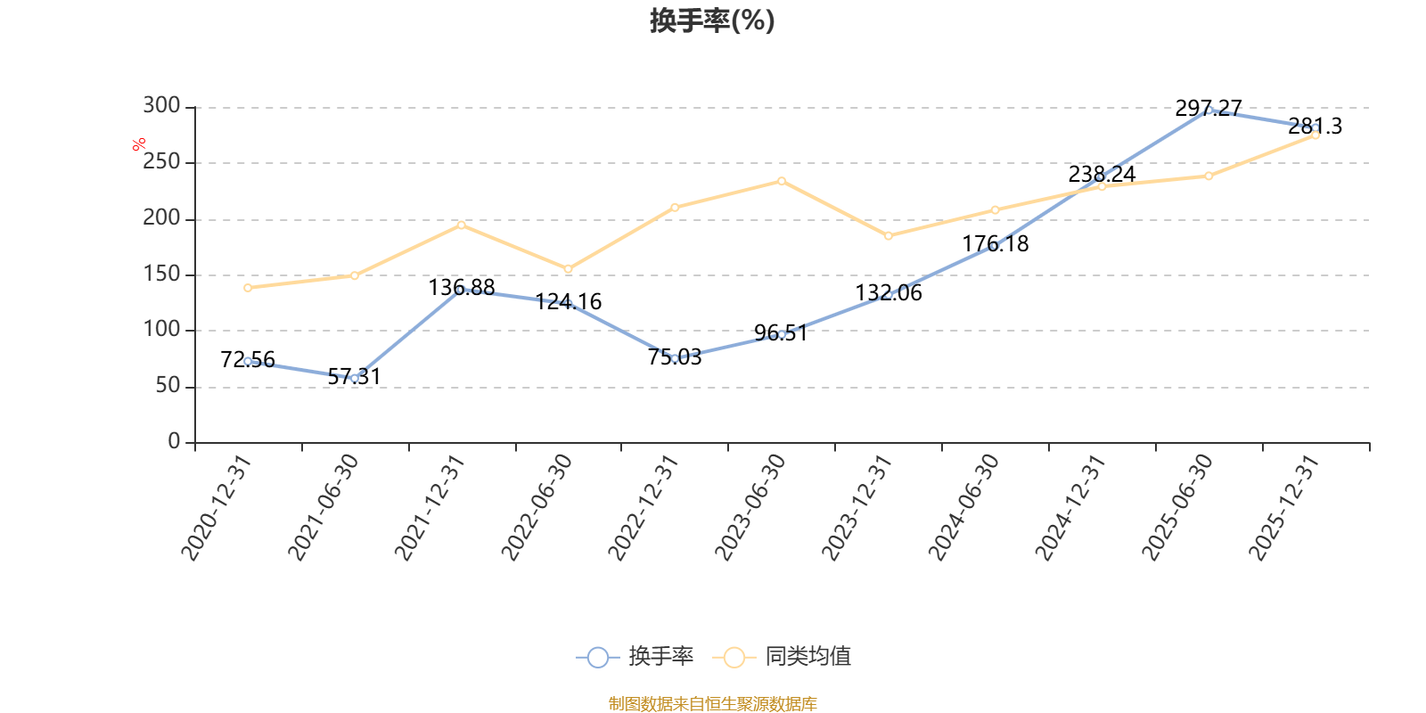 截至2025年12月31日,基金最近一年换手率约574.39%,持续1年高于同类均值。