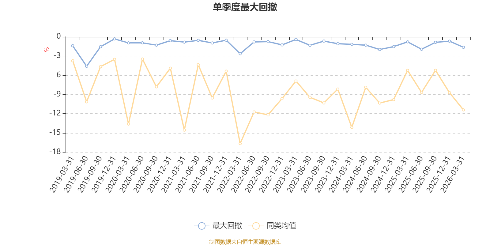 截至4月9日,基金近三年最大回撤为2.52%,同类可比基金排名31/1264。单季度最大回撤出现在2019年二季度,为4.61%。
