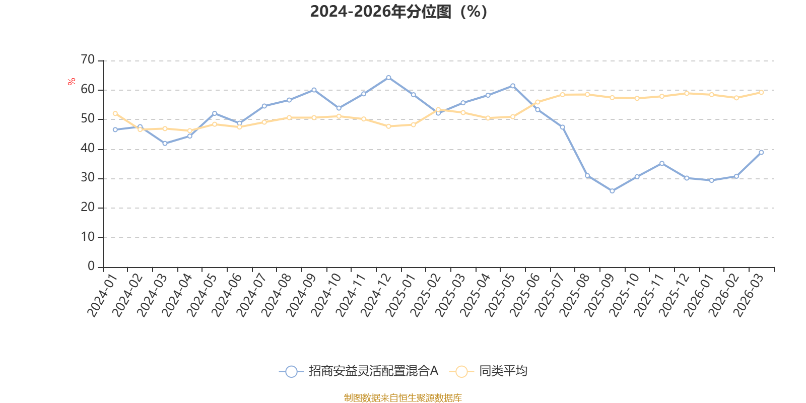 通过所选区间该基金净值增长率分位图,可以观察该基金与同类基金业绩比较情况。图为坐标原点到区间内某时点的净值增长率在同类基金中的分位数。