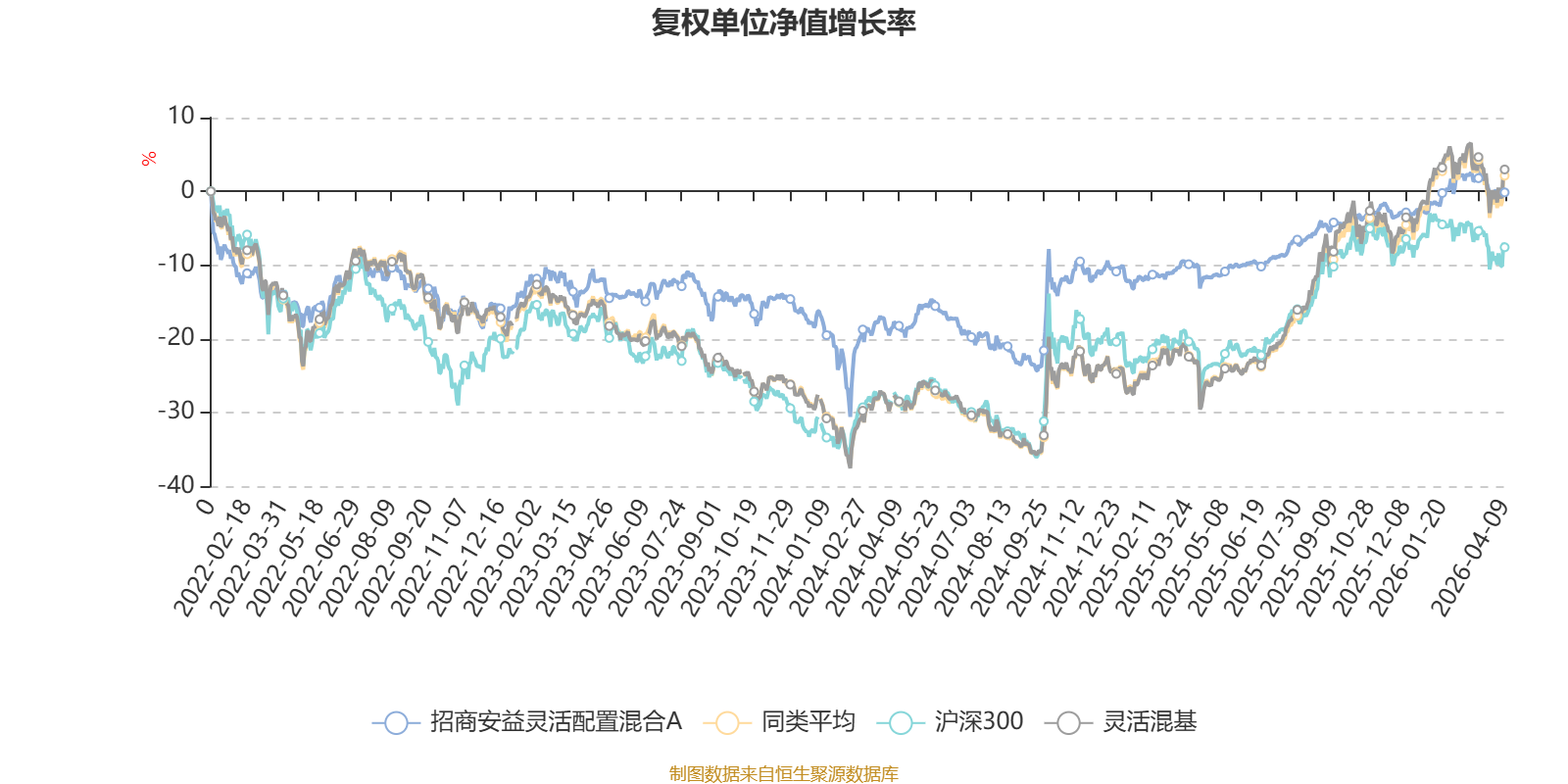 截至4月9日,招商安益灵活配置混合A近三个月复权单位净值增长率为1.47%,位于同类可比基金377/1287;近半年复权单位净值增长率为3.34%,位于同类可比基金519/1286;近一年复权单位净值增长率为13.58%,位于同类可比基金982/1286;近三年复权单位净值增长率为11.60%,位于同类可比基金686/1286。
