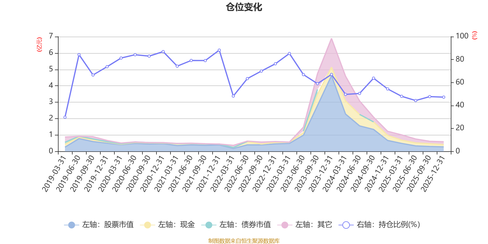 据定期报告数据统计,近三年平均股票仓位为57%,同类平均为72.57%。2021年末基金达到88.21%的最高仓位,2019年一季度末最低,为29.75%。