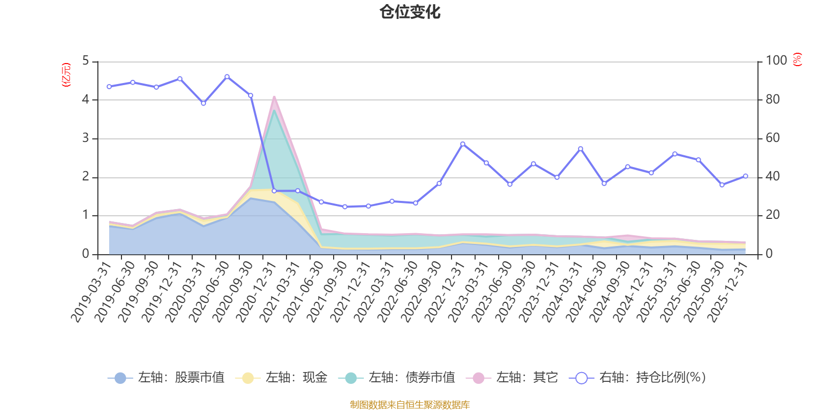 据定期报告数据统计,近三年平均股票仓位为44.01%,同类平均为72.57%。2020年上半年末基金达到92.14%的最高仓位,2021年三季度末最低,为24.73%。