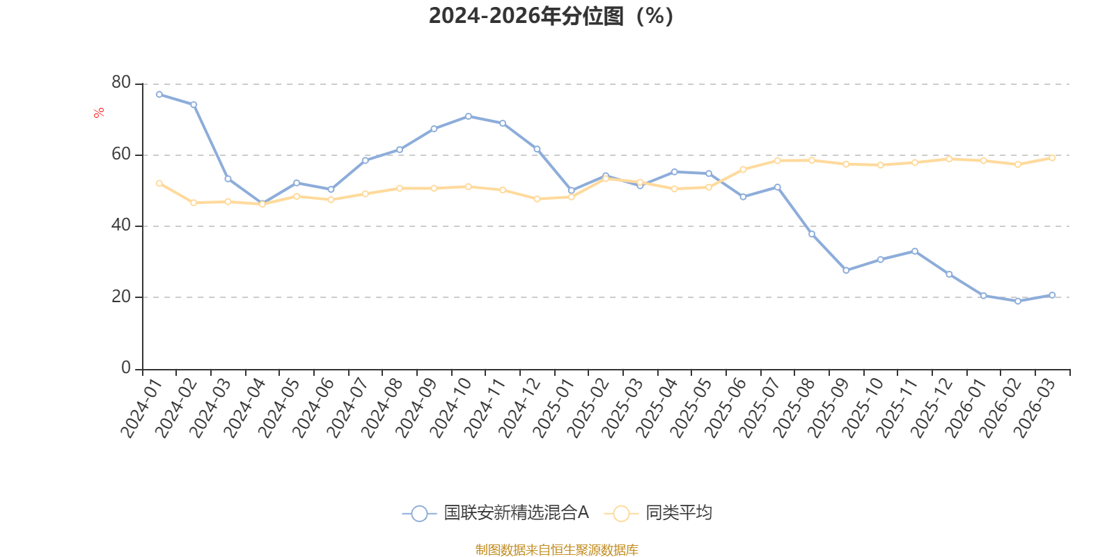 通过所选区间该基金净值增长率分位图,可以观察该基金与同类基金业绩比较情况。图为坐标原点到区间内某时点的净值增长率在同类基金中的分位数。