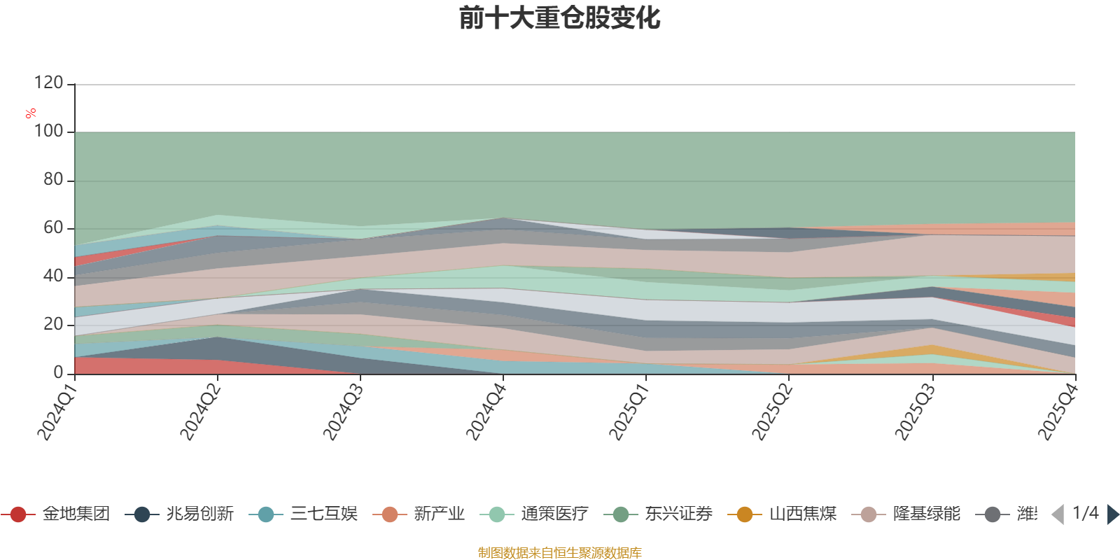 该基金持股集中度较高。截至2025年末,基金十大重仓股分别是牧原股份、东方财富、隆基绿能、陕西煤业、中国中免、保利发展、伊利股份、华泰证券、国电电力、九阳股份。
