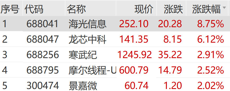 另外,上午GPU概念股直线走强。海光信息盘中涨超9%,龙芯中科、寒武纪、摩尔线程等集体走高。