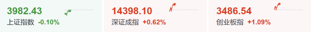4月13日,A股开盘小幅走低:上证指数跌0.38%,深证成指跌0.53%,创业板指跌0.42%。随后,市场震荡回暖。截至发稿,创业板指涨超1%,上证指数跌幅有所收窄。