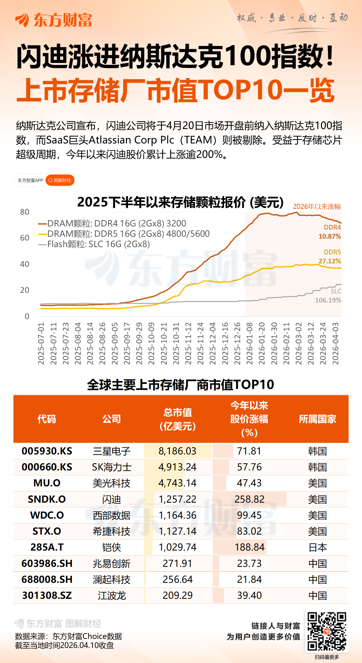 闪迪涨进纳斯达克100指数!一图速览超级周期下全球存储厂商最新市值TOP10