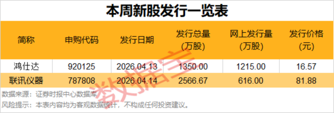 根据发行安排,本周暂有2只新股申购,今日可申购鸿仕达,本周二可申购联讯仪器。