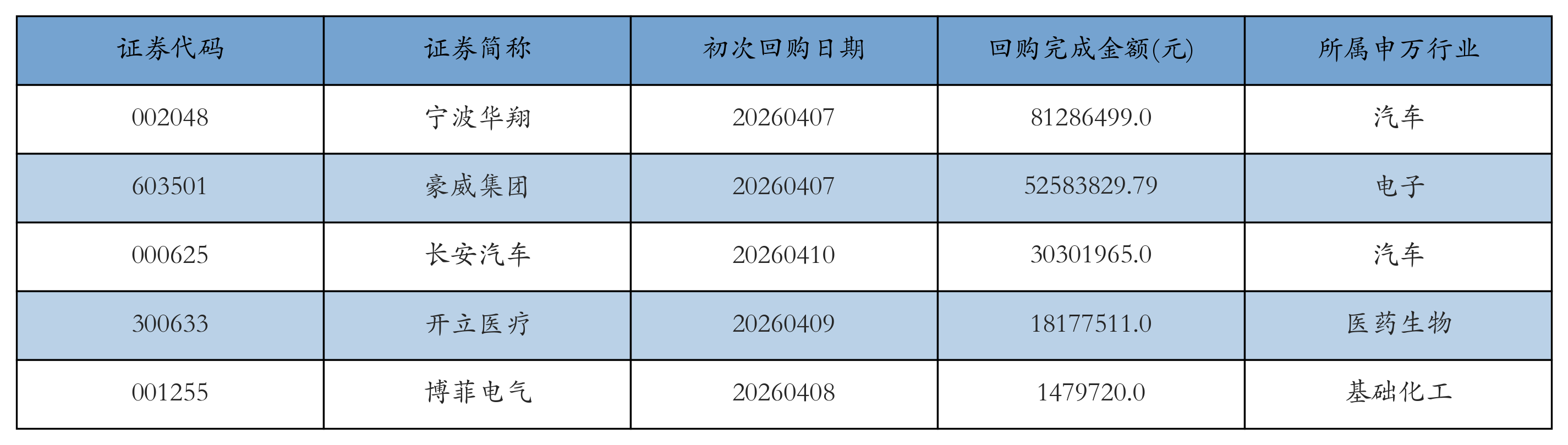 上周共有6条开始执行回购公告,其中执行金额最多的5条公告为:
