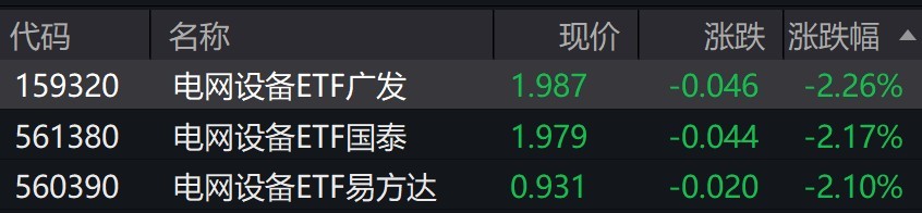 受盘面影响,电网设备相关ETF跌超2%。