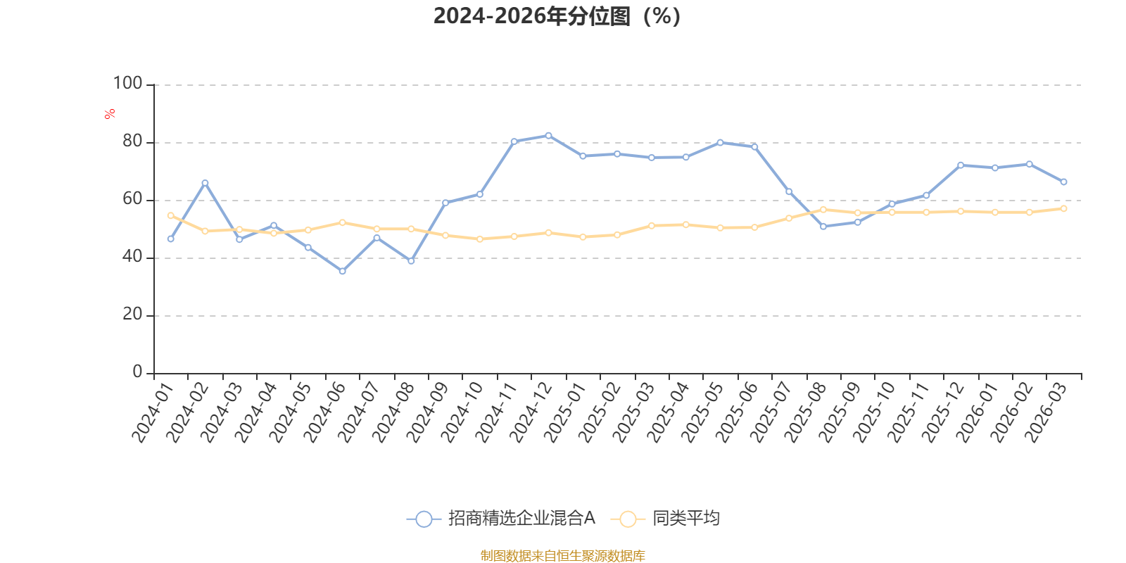 通过所选区间该基金净值增长率分位图,可以观察该基金与同类基金业绩比较情况。图为坐标原点到区间内某时点的净值增长率在同类基金中的分位数。