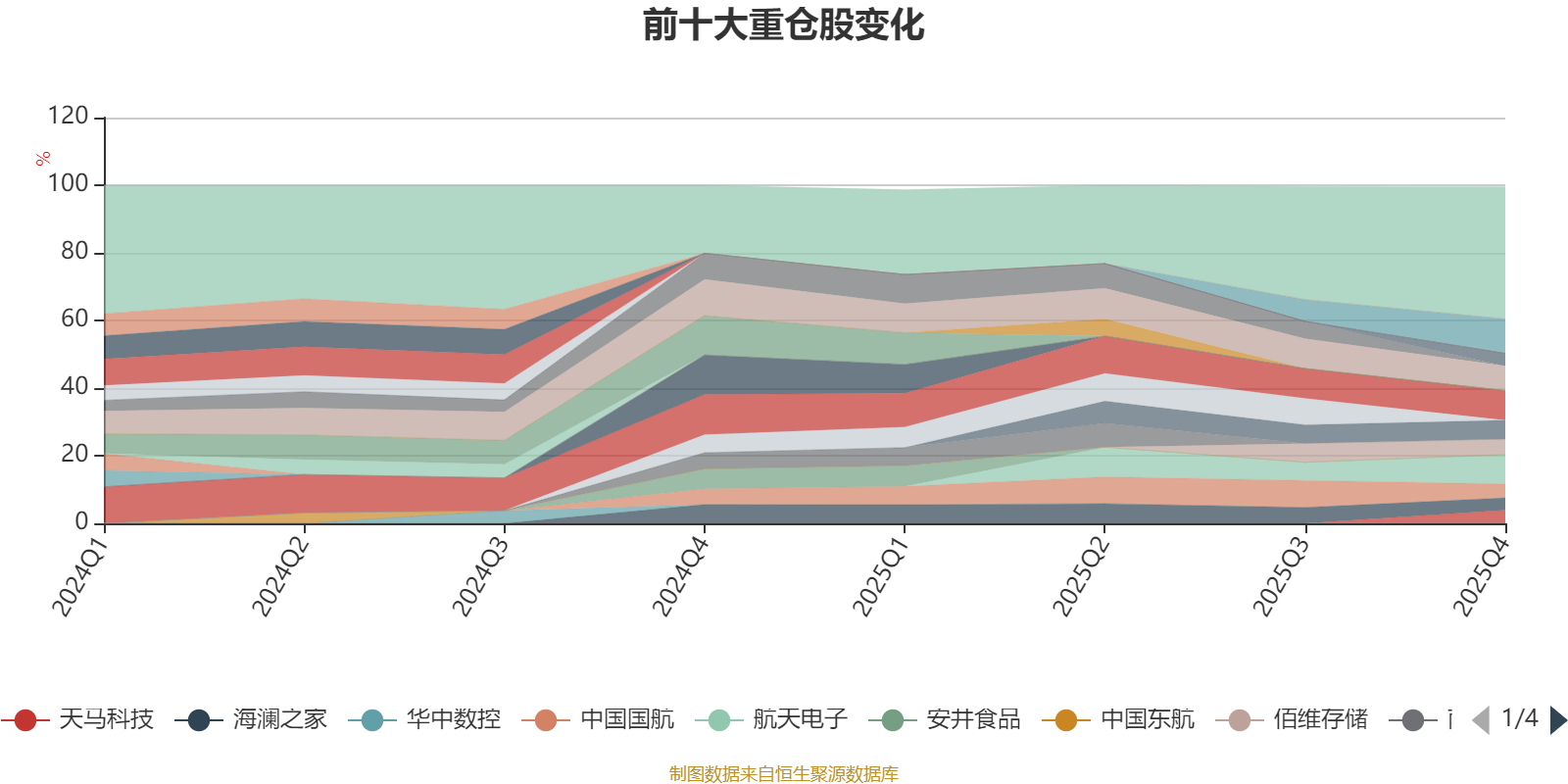 该基金持股集中度较高,近2年前十大重仓股集中度长期超过60%。截至2025年末,基金十大重仓股分别是中国东方航空股份、赛轮轮胎、航天电子、国联股份、航发控制、佰维存储、中国国航、天马科技、泡泡玛特、海澜之家。