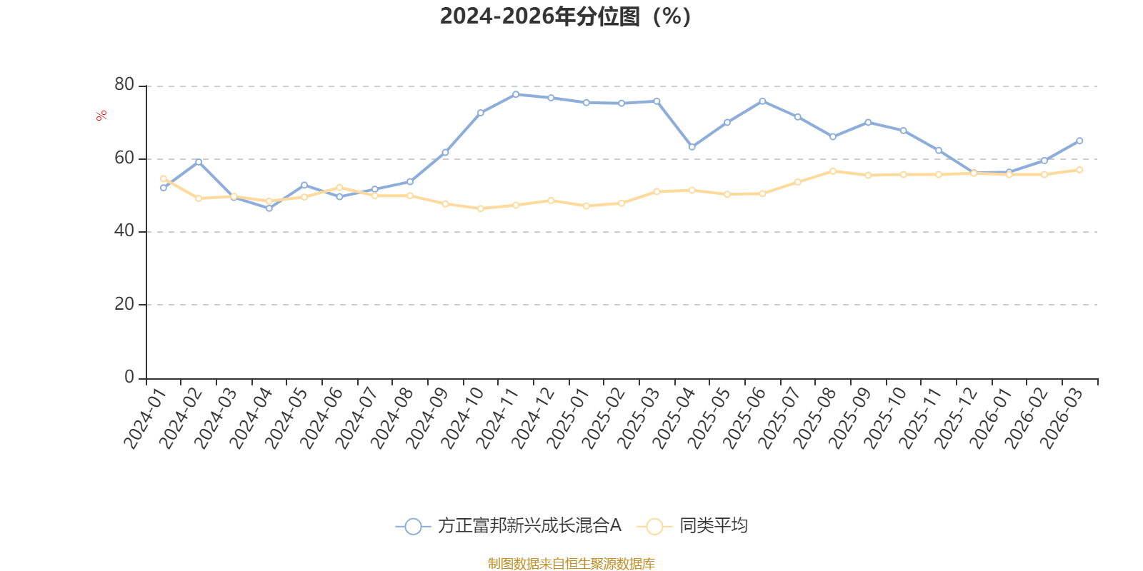 通过所选区间该基金净值增长率分位图,可以观察该基金与同类基金业绩比较情况。图为坐标原点到区间内某时点的净值增长率在同类基金中的分位数。