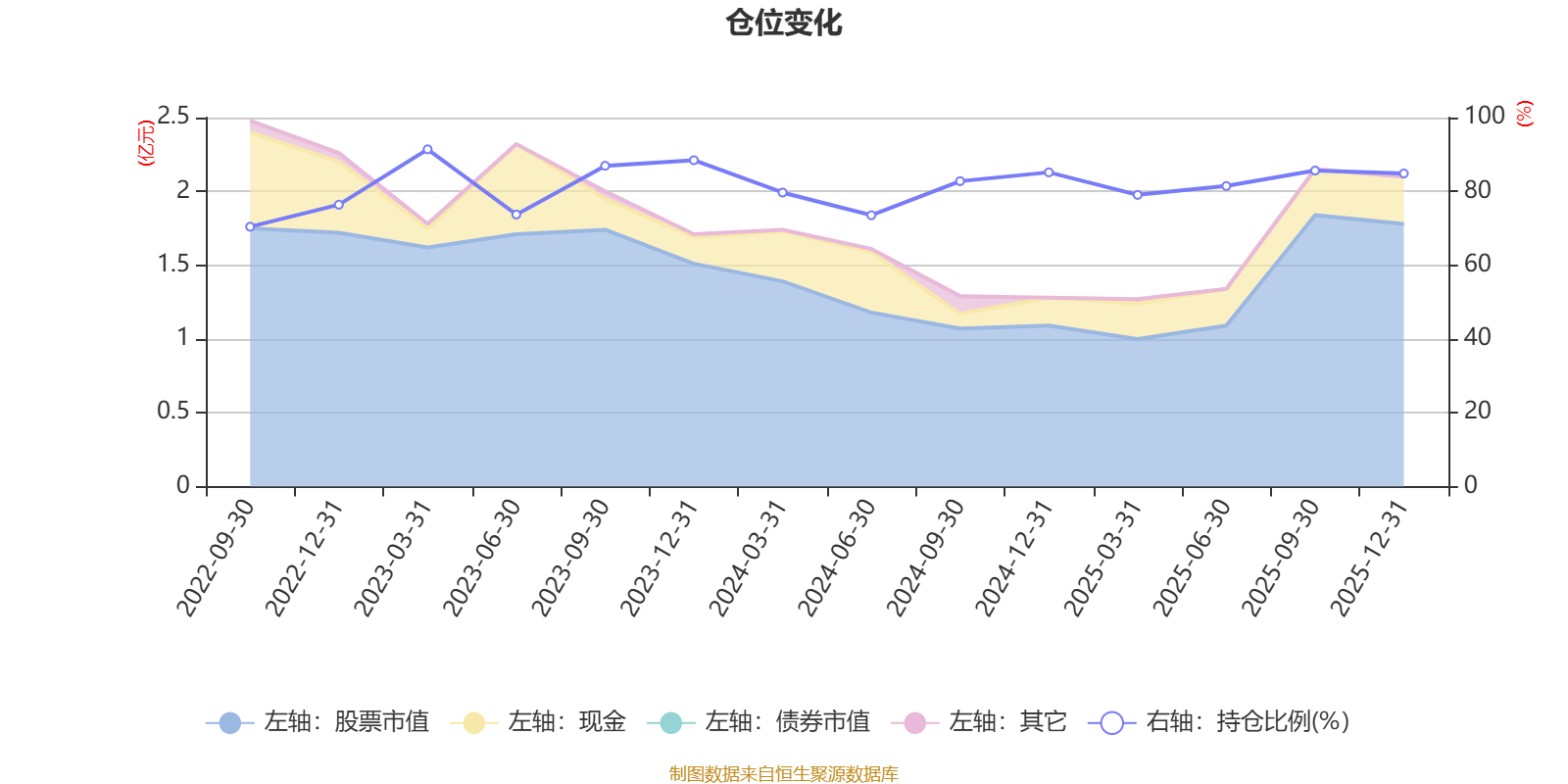 据定期报告数据统计,近三年平均股票仓位为82.73%,同类平均为85.83%。2023年一季度末基金达到91.41%的最高仓位,2022年三季度末最低,为70.42%。