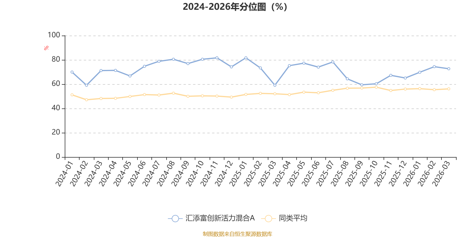 通过所选区间该基金净值增长率分位图,可以观察该基金与同类基金业绩比较情况。图为坐标原点到区间内某时点的净值增长率在同类基金中的分位数。