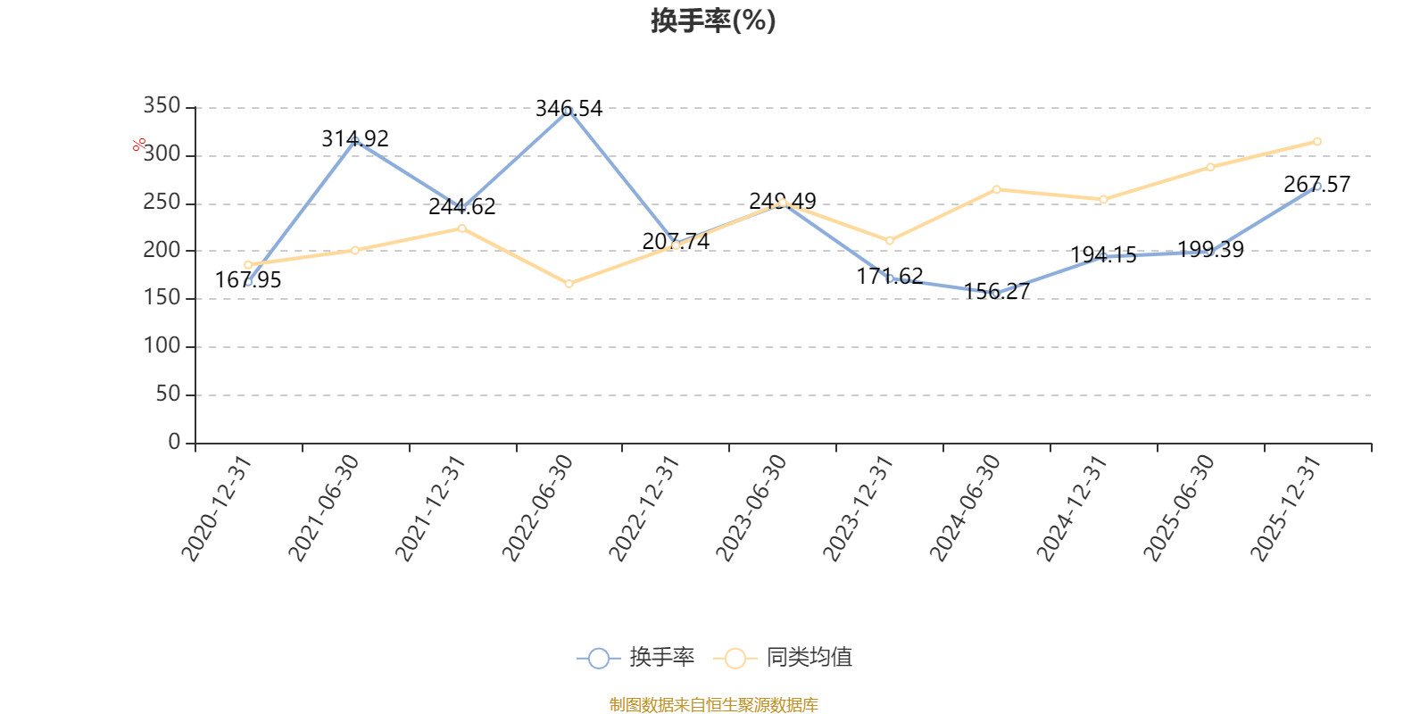 截至2025年12月31日,基金最近一年换手率约484.12%,持续3年低于同类均值。